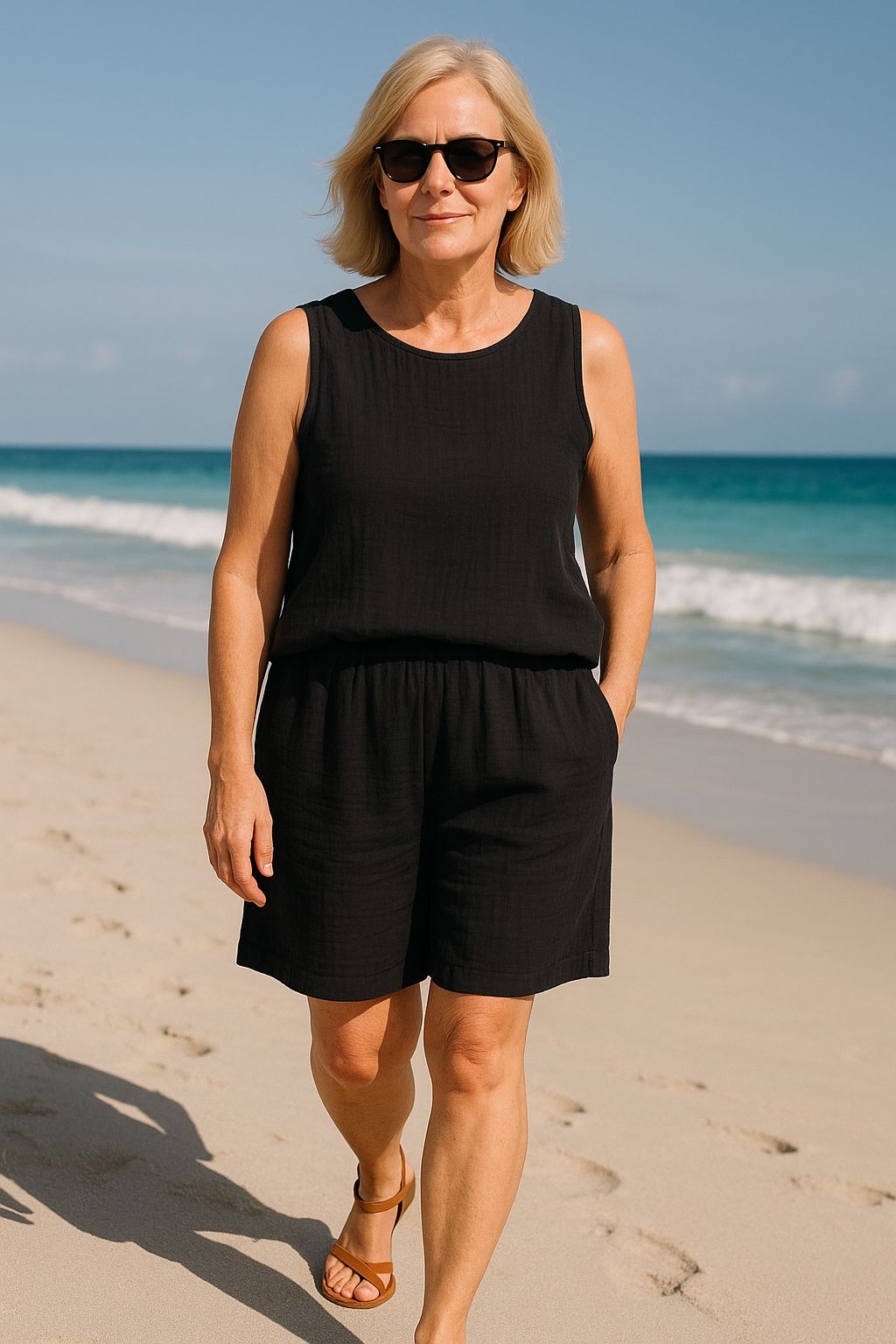 A Comfortable and Stylish Choice for Hot Days: Muslin Sleeveless Blouse and Shorts Set