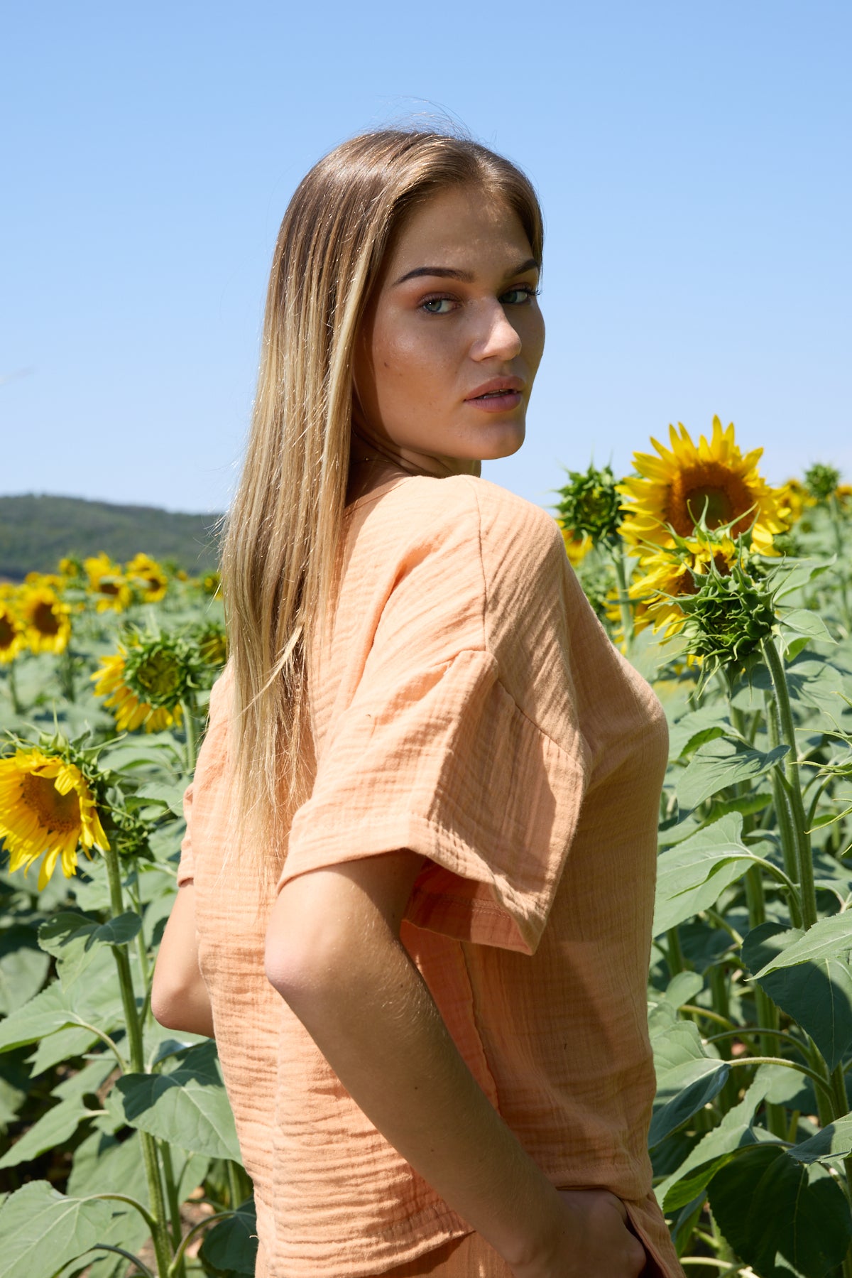 ✔️ 100% cotton, breathable muslin fabric ✔️ Oversize T-shirt and relaxed fit shorts ✔️ Natural and timeless color options ✔️ Skin-friendly, soft, and lightweight ✔️ Suitable for home, beach, outdoors... anywhere